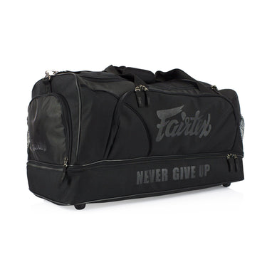 This Fairtex Fighter Gym Bag in Black is the ultimate blend of form and function. Crafted to be both spacious and durable, it combines style with practicality, allowing you to store your gym clothing and equipment in one convenient place. A separate compartment for wet gear ensures your dry items stay fresh and odor-free. Perfect for daily commutes, gym sessions, or short trips.