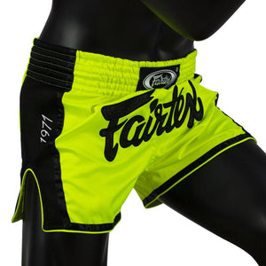 Step into the ring with the Fairtex BS1706 Muay Thai Shorts in vibrant lime green, accented by sleek black piping for a professional, athletic look. Crafted from high-quality satin, these shorts offer durability and maintain their shape during rigorous training sessions. Designed with a slim cut and high slits, they provide maximum freedom for kicks and knee strikes. The six-band elastic waistband ensures a secure and comfortable fit. Finished with a custom Fairtex wrist label that complem...