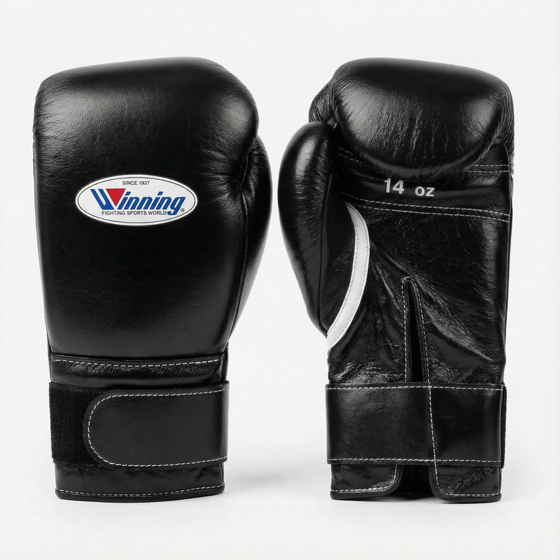 Experience superior hand protection with the WINNING Velcro Boxing Gloves in black, crafted from premium leather for durability and comfort. These gloves are designed to provide excellent support and cushioning, making them ideal for intense training sessions and sparring. Trust in the quality and craftsmanship that professional fighters rely on to enhance performance while minimizing injury risks.